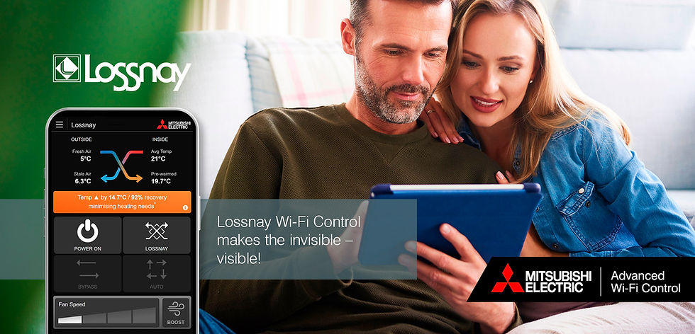 Mitsubishi Electric Lossnay Wi-Fi Control is the smart evolution in fresh air ventilation. Available as standard with the Vertical Lossnay Series or as an optional upgrade for the LGH-RVX3 and LGH-RVS Ranges.